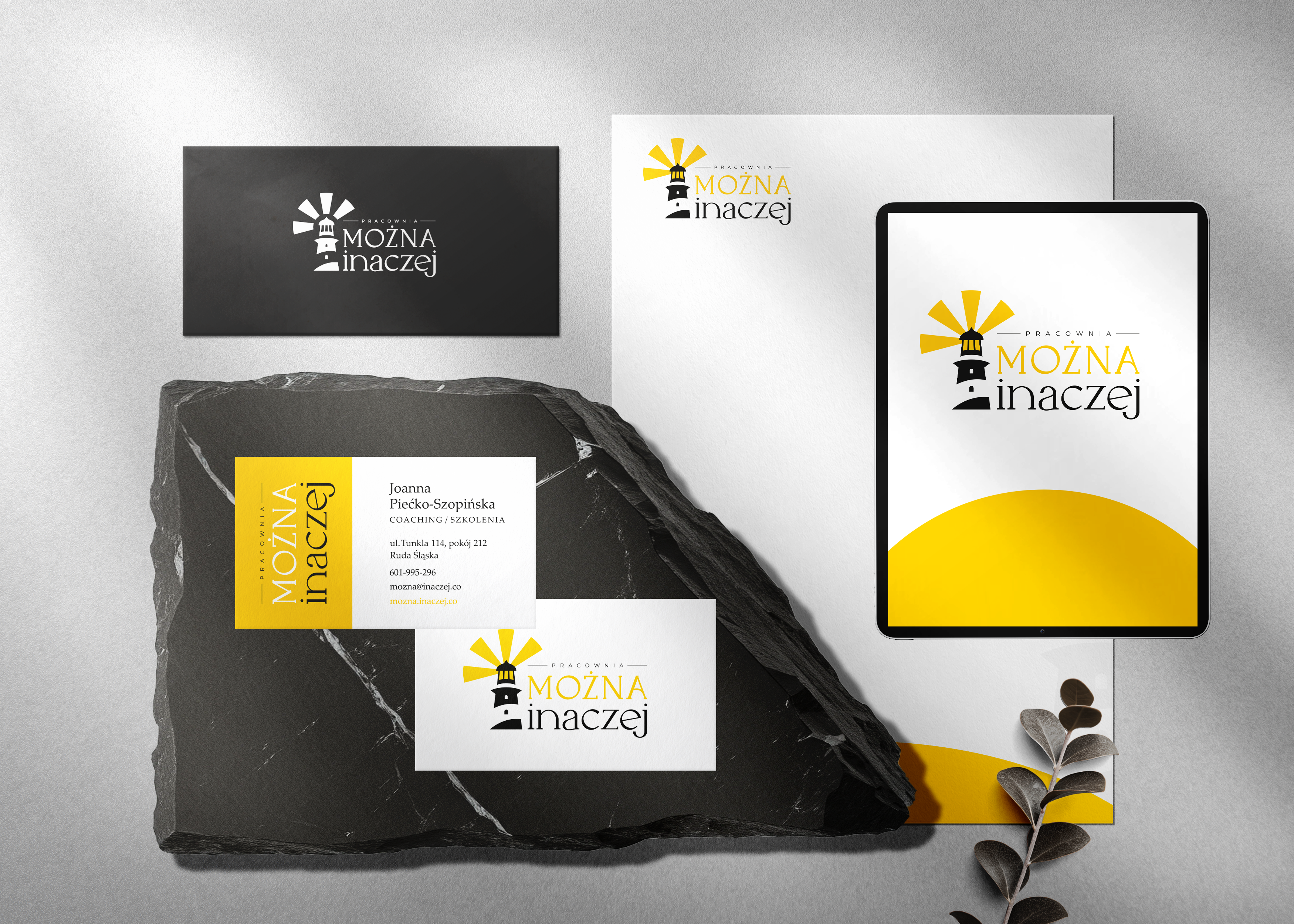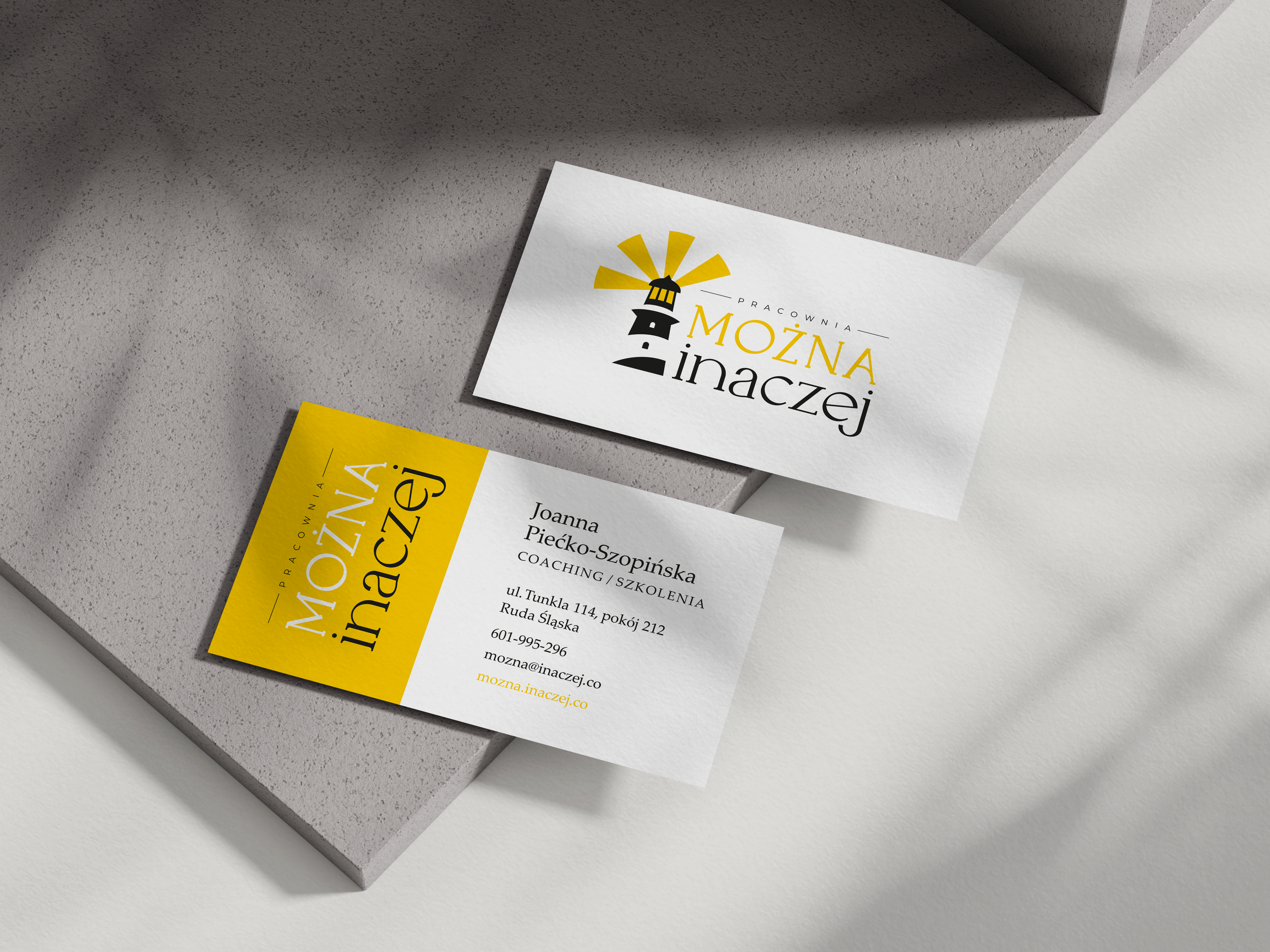 Dla Joanny Piećko-Szopińskiej stworzyłam spójne logo i wizytówkę, którego sercem jest motyw latarni morskiej. Ten czytelny symbol drogowskazu idealnie odzwierciedla cel i charakter jej pracy. Projekt łączy w sobie spokój, profesjonalizm i nadzieję, budując zaufany wizerunek pracowni w Rudzie Śląskiej oraz przestrzeni online.